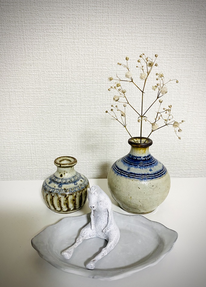 (Photo) Horse figure which I bought. Small vases are my collections from past events.
